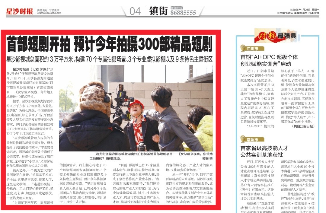 从一声“开机”令下,到年产数百部精品的未来愿景,星沙影视城正以扎实的规划和创新的服务,成为长沙县推动影视与文旅深度融合、构建现代化文创产业生态体系的关键落子,助力更多“星沙出品”的好故事,走向更广阔的荧屏世界。