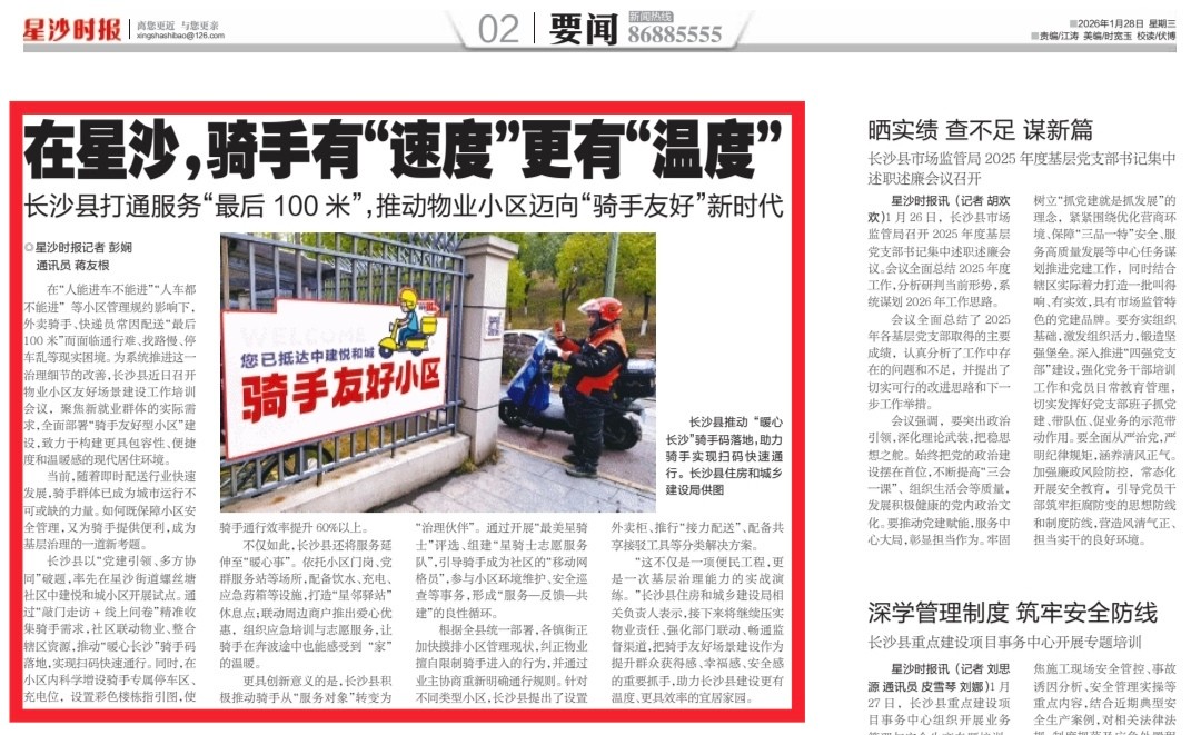 长沙县打通服务“最后100米”,推动物业小区迈向“骑手友好”新时代