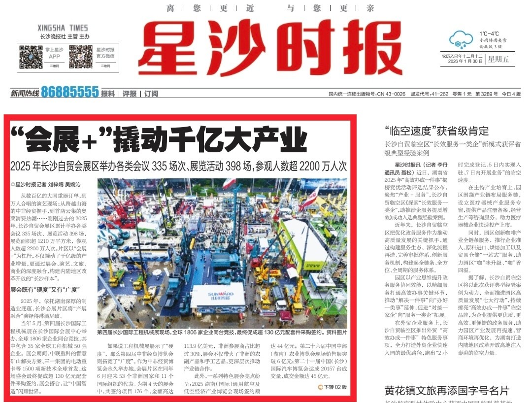 从数百亿的大国重器订单,到万人合唱的演艺现场;从跨越山海的中非经贸握手,到首店云集的奥莱消费热潮……片区成立以来,累计举办各类会议335场次、展览活动398场,展览面积超1210万平方米,参观人数超2200万人次。片区以“会展+”为杠杆,不仅撬动了千亿级的产业增量,更通过展会、演艺、文旅、商业的深度融合,构建内陆地区改革开放的“长沙样本”。