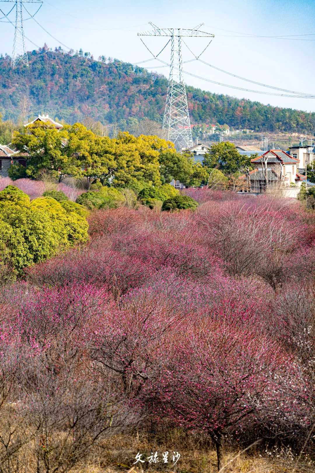 此时的北山,正是梅花盛花期,梅庄附近的果梅与青梅沿山铺展,从山脚到山腰晕染出一片温柔的粉白;北山书屋旁的两万株梅林连成一片花海,穿浅色衣服或汉服,拍照很出片。