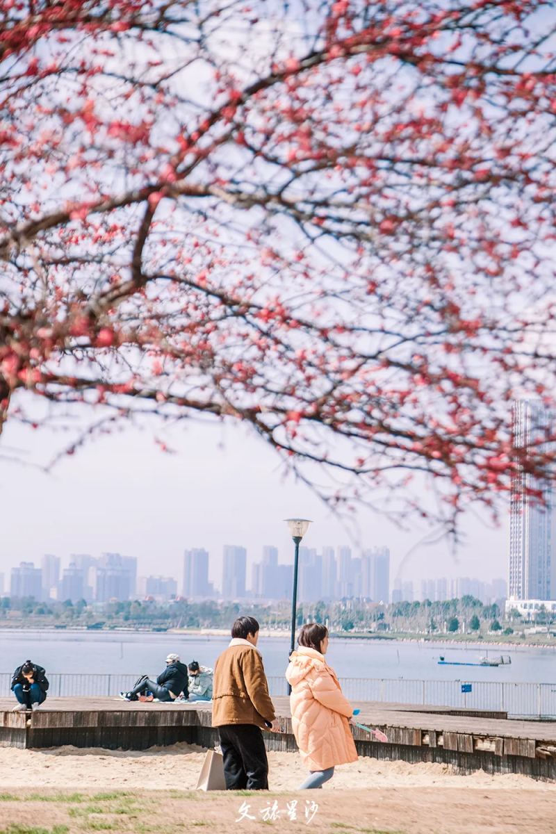 松雅湖被誉为“长沙最像海的地方”,碧水蓝天,波浪起伏,自带一种“疗愈感”。湖畔的梅花也已经开放,远远望去,像一片粉色的云霞落在湖边,走近看,每一株都各有蓬勃风采。