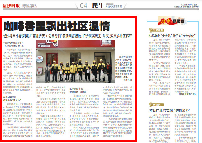 一场社区暖春活动的热闹散去,星沙街道面向社区治理的创新探索却不会停步。杨梅冲社区幸福咖啡馆里这杯带着公益温度的咖啡,氤氲出的不止有香气,还有更多关于社区治理、邻里关系与城市温度的新探索和新愿景。