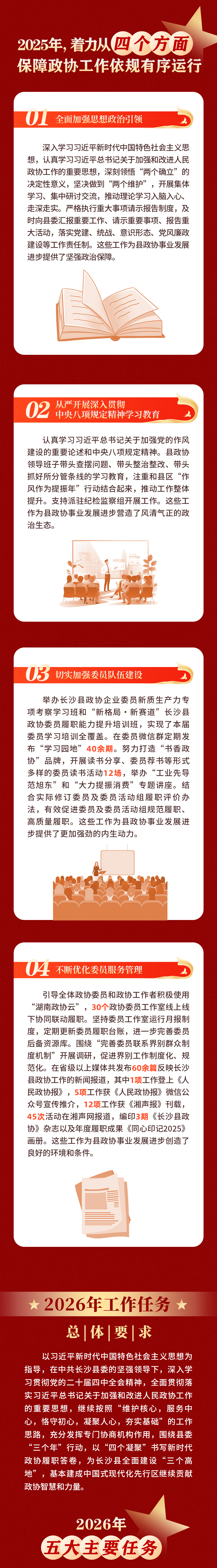 星图绘 | 一图速览政协长沙县第十届委员会常务委员会工作报告 稿源:掌上星沙 阅读量: 2026-02-26 11:30:00 您的浏览器不支持 video 标签。 您的浏览器不支持 audio 标签。 设计 | 杨祎莹编辑 | 蒋亦子校对 | 朱波 王倩审核 | 唐建兵 王嫔 【作者:】 【编辑:蒋亦子】 星沙时报,未经授权不得转载举报 关键词: