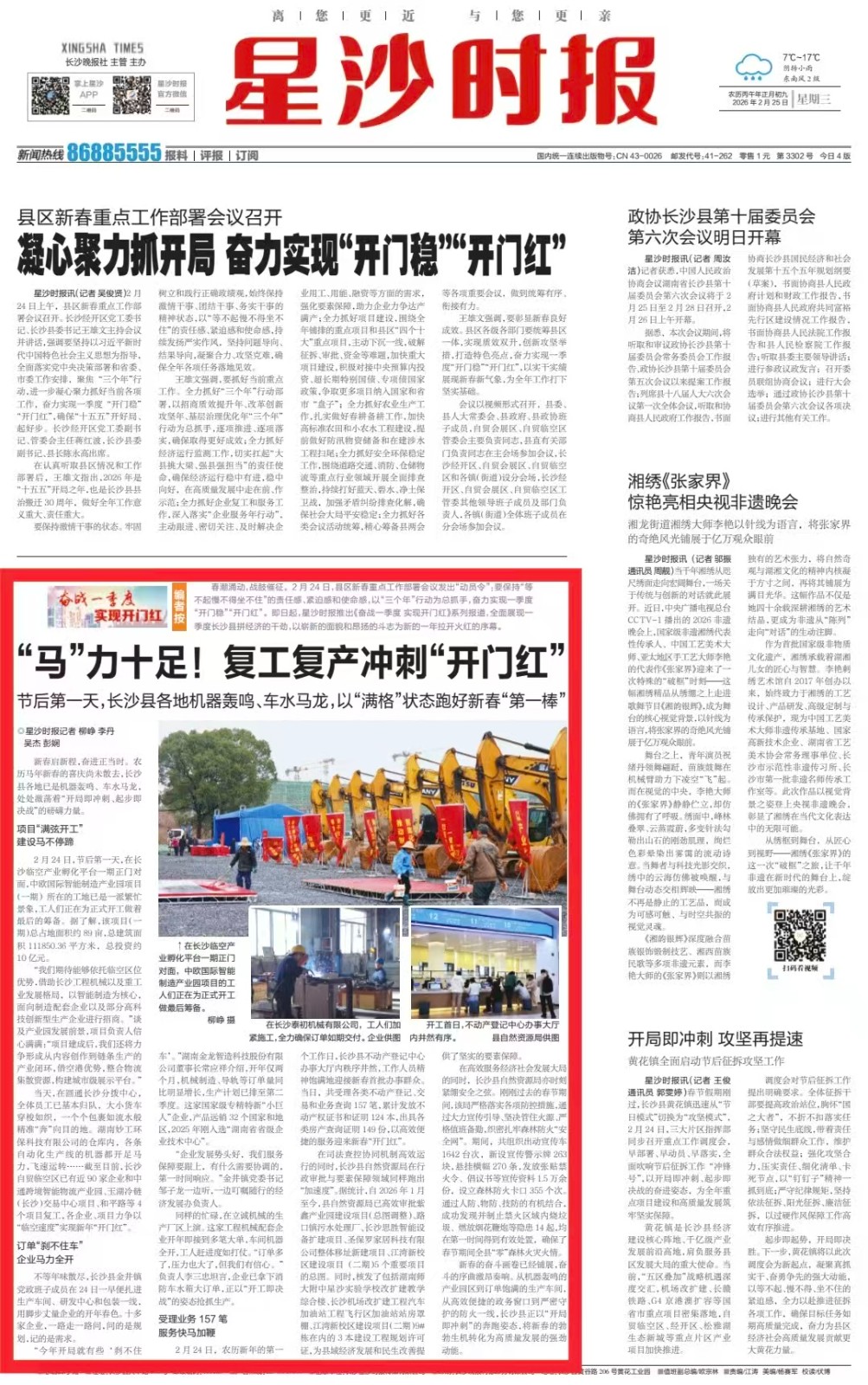 新春启新程,奋进正当时。农历马年新春的喜庆尚未散去,长沙县各地已是机器轰鸣、车水马龙,处处激荡着“开局即冲刺、起步即决战”的磅礴力量。