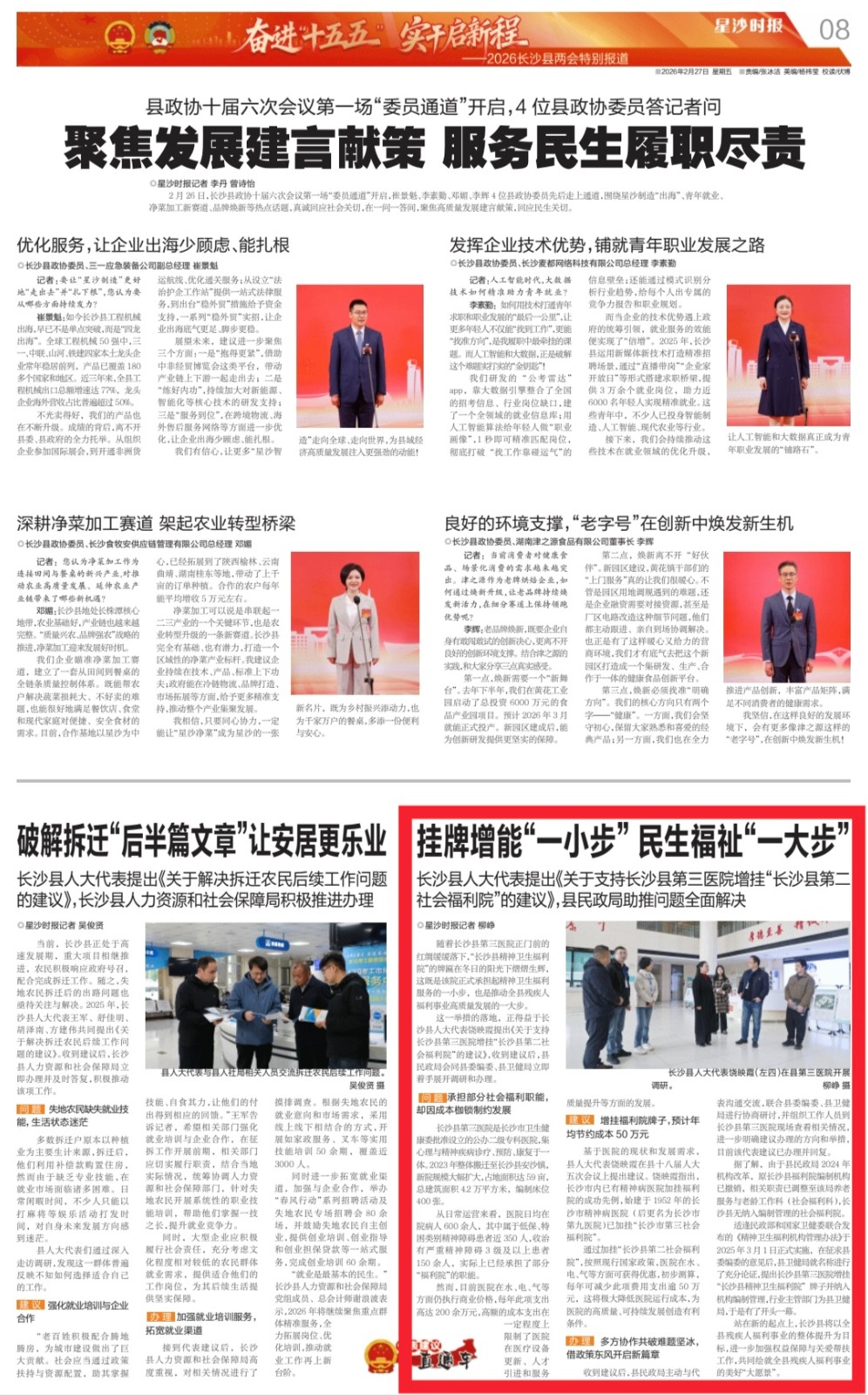 长沙县人大代表提出《关于支持长沙县第三医院增挂“长沙县第二社会福利院”的建议》,县民政局助推问题全面解决