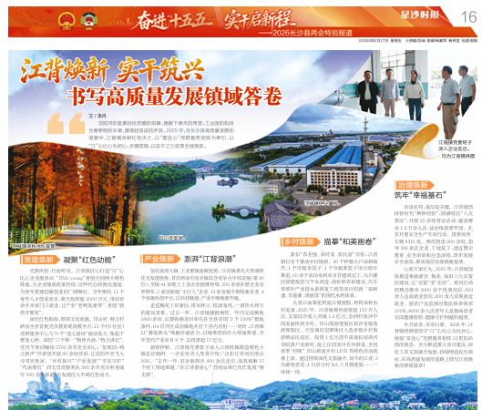 浏阳河的晨雾轻抚苏醒的田畴,播撒下春天的希望;工业园的机鸣合奏黎明的乐章,激荡起奋进的声浪。2025年,在长沙县高质量发展的浪潮中,江背镇深耕红色沃土,以“星连心”党群服务矩阵为牵引,以“江”心比心为初心,步履铿锵,以实干之力实现全域焕新。