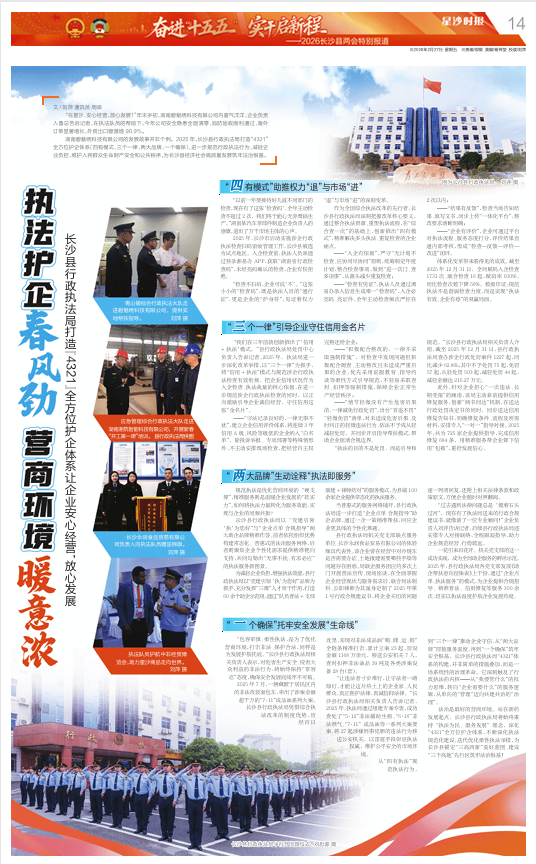 法治是最好的营商环境。站在新的发展起点,长沙县行政执法局将始终秉持“执法为民、服务发展”理念,深化“4321”全方位护企体系,不断深化执法规范化建设,迭代优化柔性执法举措,为长沙县锚定“三高四新”美好蓝图、建设“三个高地”先行区筑牢法治根基!