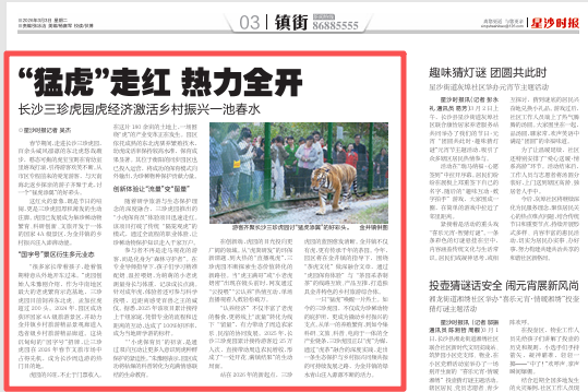 “认养经济”不仅丰富了老虎的餐食,更将线上“流量”转化为线下“留量”,有力带动了周边农家乐、民宿的协同发展。2025年,长沙三珍虎园累计接待游客近25万人次,直接带动周边农民增收,形成了“一处开花、满镇结果”的生动局面。