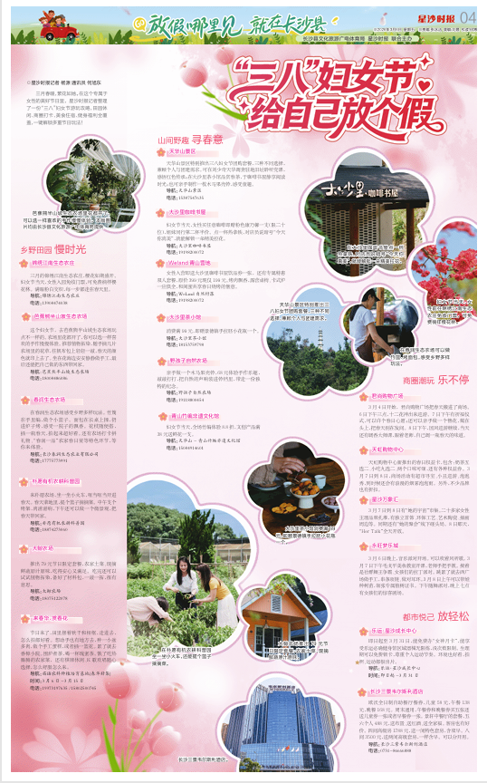 三月春暖,繁花如她。在这个专属于女性的美好节日里,星沙时报记者整理了一份“三八”妇女节游玩攻略,田园休闲、商圈打卡、美食住宿、健身福利全覆盖,一键解锁多重节日玩法!