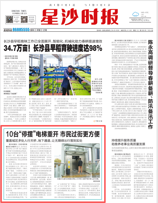 长沙县城管局相关负责人表示,将以此次电梯提质改造为契机,持续筑牢城市出行安全防线,常态化做好市政设施管护。今年将深入推进“五进五提”十大行动,以一件件看得见、摸得着的民生实事,不断提升城市管理精细化水平,书写高质量发展民生答卷。
