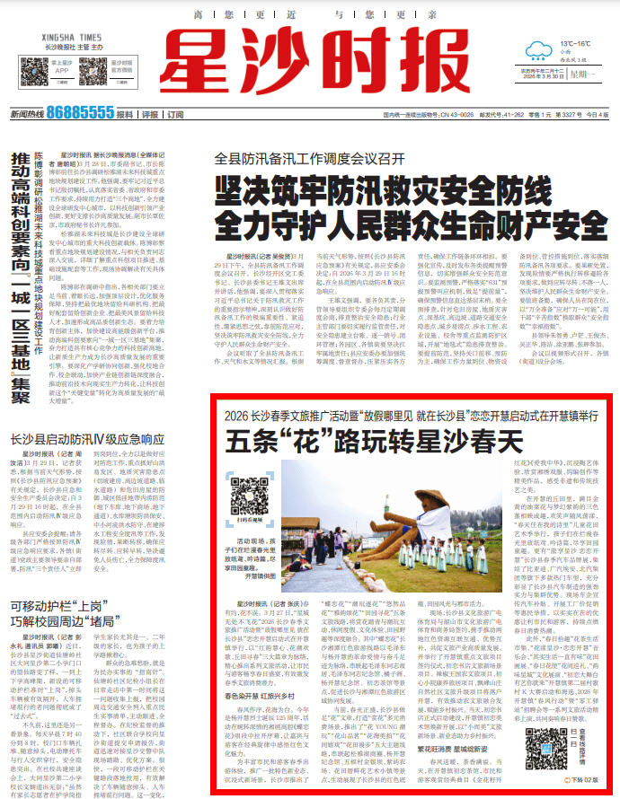 星沙时报3月27日讯(记者 张庆)春有约,花不误。3月27日,“星城无处不飞花”2026长沙春季文旅推广活动暨“放假哪里见 就在长沙县”恋恋开慧启动式在开慧镇举行,以“红韵慧心、花潮欢歌、丘田寻春”三大篇章为脉络,精心推出系列文旅活动,让市民与游客畅享春日盛宴,有效激发春季文旅消费潜力。