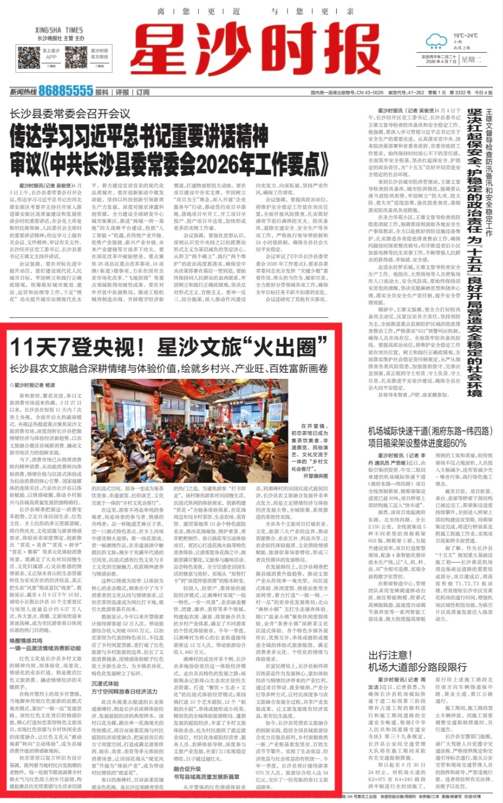 春和景明,繁花竞放,春日文旅消费市场迎来热潮。3月27日以来,长沙县在短短11天内7次登上央视,全面开启火热刷屏模式。央视这些报道重点聚焦星沙文旅消费市场,深度剖析长沙县把握情绪经济与体验经济新趋势,以农文旅融合激活县域新消费、撬动文旅市场活力的创新实践。