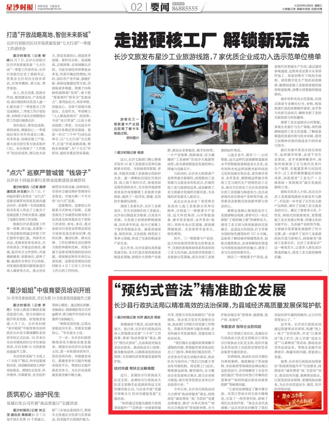 今年以来,长沙县行政执法局大力倡导“执法即服务”理念,持续深化“减负增效 ‘执’为您好”党建品牌建设,推出“点单式普法”“预约式合规指导”等创新举措,全力护航县域企业“招得来、能落地、投产快、发展好”。