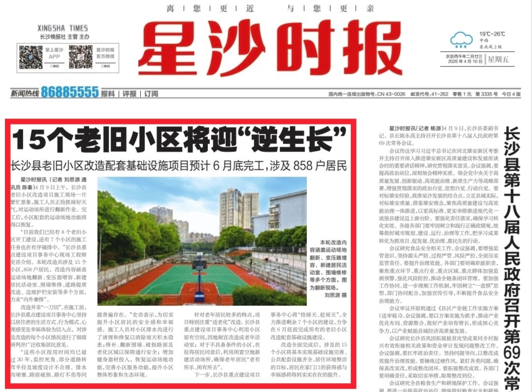 时报头条| 长沙县15个老旧小区将迎“逆生长”,预计6月底完工→