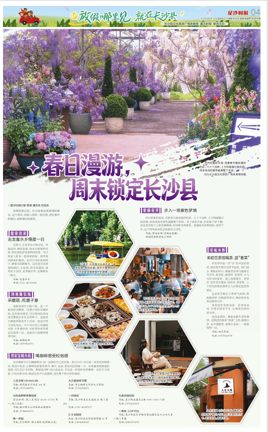 星沙藏着不少宝藏咖啡店,每一家都有自己的风格。春日午后,可以找一家喜欢的咖啡店,窝进沙发里,让咖啡香陪着你看书、聊天、发呆,把时间过得慢一点。如果偏爱更静谧的氛围,可以去打卡村咖。推窗是田野,抬头是远山,手边是一杯刚冲好的咖啡。没有车马喧嚣,只有风和鸟鸣,喝进去的不只是咖啡,还有整个春天的松弛感。