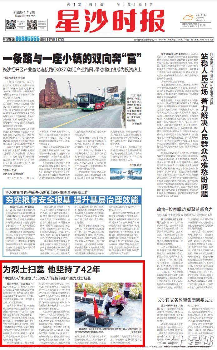 星沙时报3月27日讯(记者 杨源 钟晴)日前,“中国好人”朱豫刚、“长沙好人”陈槐以及老兵代表和志愿者们共同前往广西,为在自卫还击保卫边疆作战中光荣牺牲的烈士扫墓。这已是朱豫刚第42次、陈槐第3次踏上广西边疆扫墓。