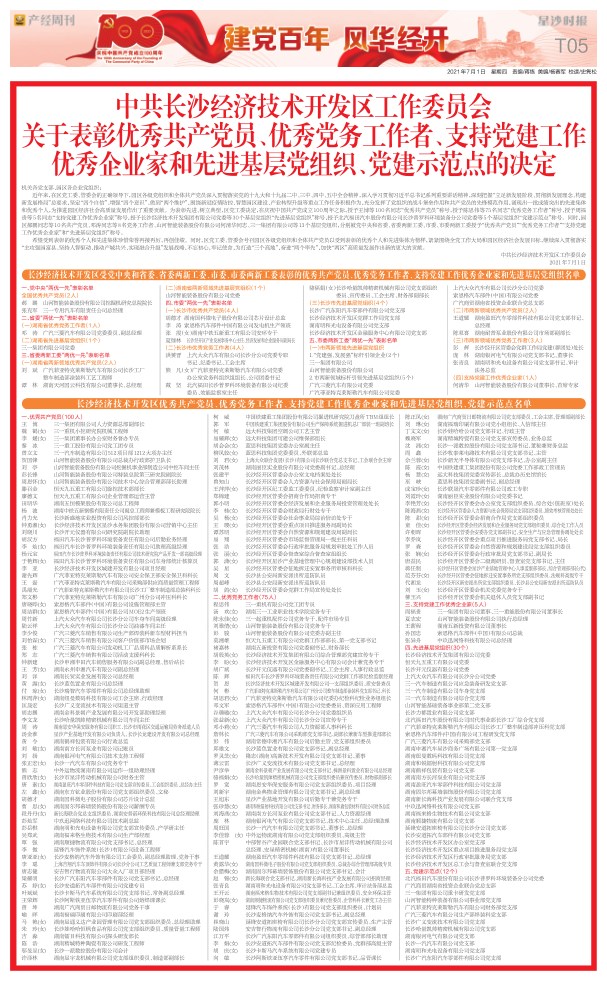 建党百年 风华经开|中共长沙经济技术开发区工作委员会关于表彰优秀共产党员、优秀党务工作者、支持党建工作优秀企业家和先进基层党组织、党建示范点的决定