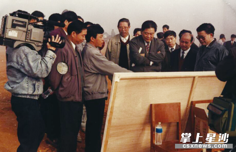 1993年11月,时任湖南省委书记王茂林(右四)考察正在建设中的星沙开发区。资料图片