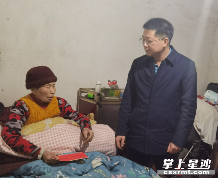“彭奶奶,降温了,好好保重身体,祝您春节愉快。”长沙县应急管理局党委书记、局长杨曲一行来到了百岁老人彭奶奶的家中,给彭奶奶送出生活物资和慰问金。慰问过程中,杨曲与彭奶奶拉起了家常,详细询问她的身体情况,耐心叮嘱她注意身体,安心过好年。