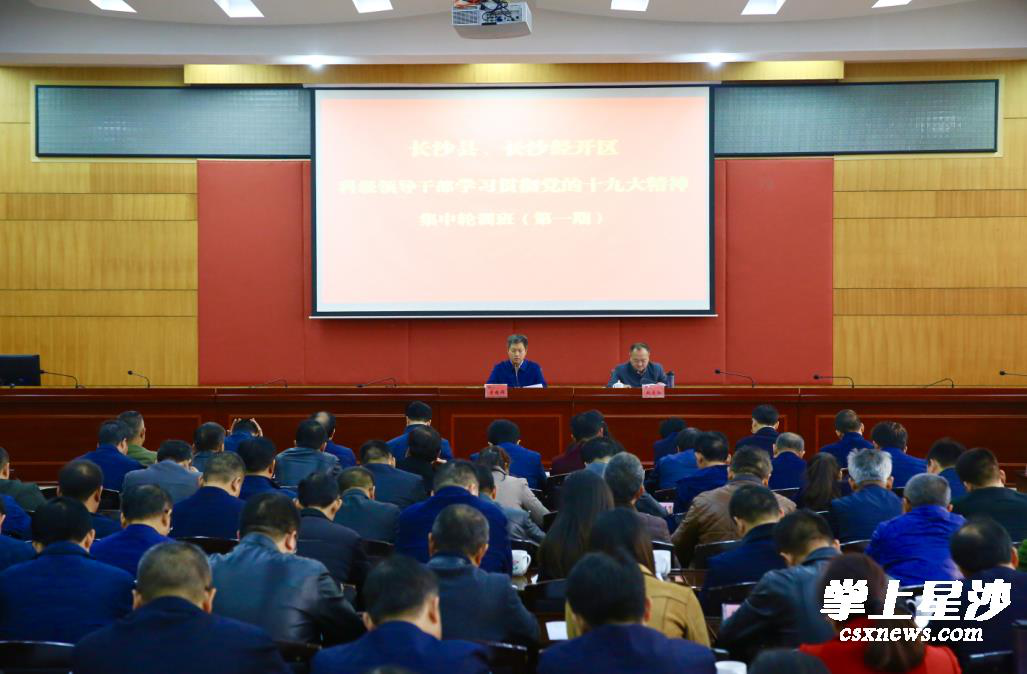 星沙时报全媒体12月6日讯(记者 熊毅 蒋志斌)昨日上午,长沙县、长沙经开区科级领导干部学习贯彻党的十九大精神集中轮训班在县委党校开班。长沙经开区党工委书记、长沙县委书记曾超群领读入党誓词并作专题辅导报告,长沙经开区党工委副书记、管委会副主任张庆红主持,长沙县委副书记、县长张作林参加轮训动员会。