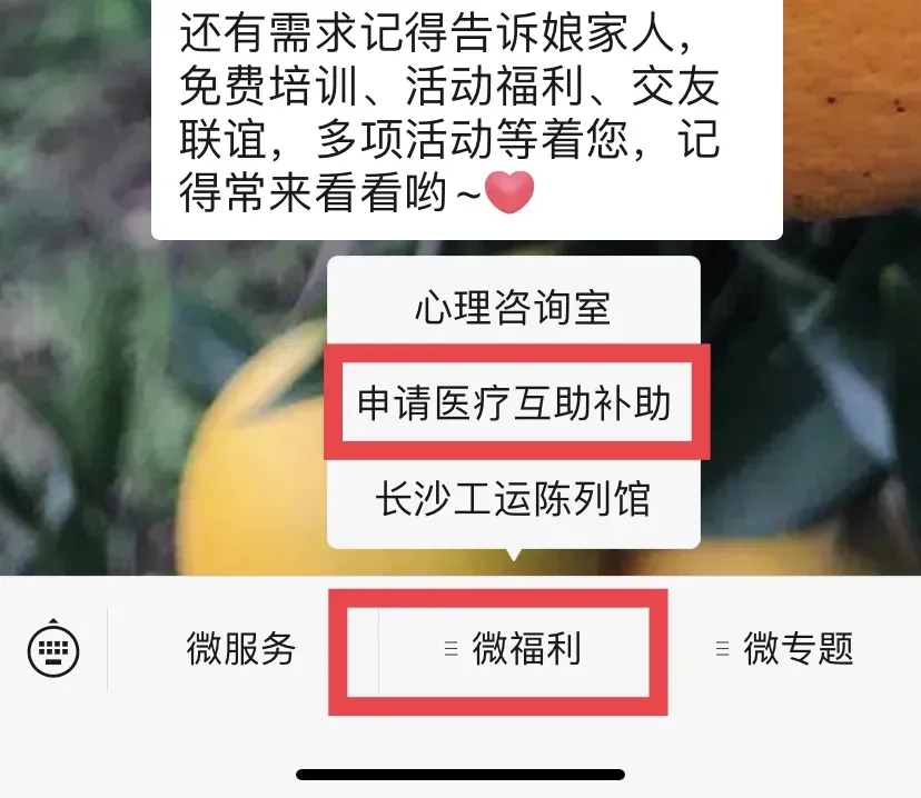 (点击菜单栏“微福利”→进入“申请医疗互助补助”页面即可申报)