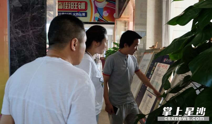 长沙县住房保障局工作人员在东方美地营销中心检查相关公示情况。李丹 摄