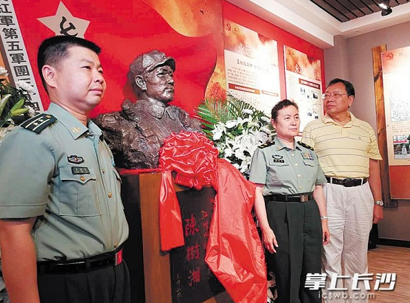 陈树湘烈士的出生地就在长沙县福临镇。昨日是“八一”建军节,陈树湘的生死战友、开国中将韩伟的独子韩京京来到烈士的出生地,向长沙县福临镇陈树湘烈士事迹陈列室捐赠了一座陈树湘烈士铜像。“断肠明志”的烈士陈树湘终于“回家”了。