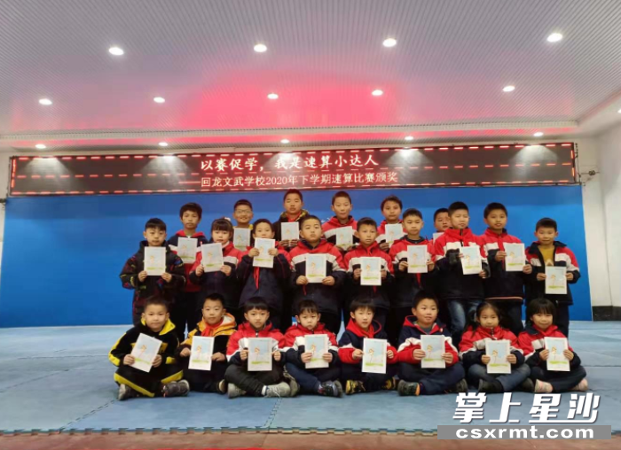 星沙时报12月28日讯(记者 李丹 通讯员 粟容婷 罗敏)计算是数学中重要的组成部分,是学生学好数学的基础。学生计算能力的强弱直接关系到学生学习数学的兴趣和效果,计算能力的训练有助于培养学生敏锐的观察力、综合思维能力及快速反应能力。12月28日上午,回龙文武学校为全校速算比赛中的获奖者颁奖。