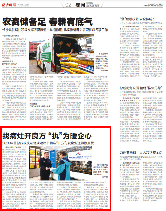精准“把脉”、为企“开方”。在长沙县行政执法局,这样的帮扶行动早已成为常态。近年来,长沙县行政执法局打造“党建引领 ‘执’为您好”“企业点单 合规指导”助企品牌,通过一企一策精准帮扶,助力企业排忧解难。2025年,该局为企业提供合规指导、精准普法、信用修复等服务300余次,切实以执法温度护航企业发展热度。
