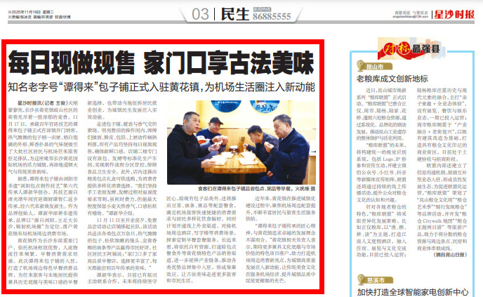 作为长沙东部重要门户,黄花镇依托机场枢纽优势,人流物流往来频繁,早餐消费需求旺盛。此次谭得来包子铺的入驻,打造了机场周边特色早餐消费品牌,为往来旅客与本地居民提供兼具历史底蕴与美味口感的早餐新选择,也带动当地征拆居民就业创业,为城镇民生发展注入实效动能。