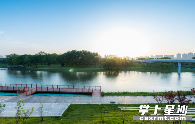 链接长沙高铁南站与长沙国际会展中心的磨盘洲生态公园,四面环水,超15万平方米的面积集生态、景观、功能三位一体,致力打造水润绿洲、城市洲岛名片。
