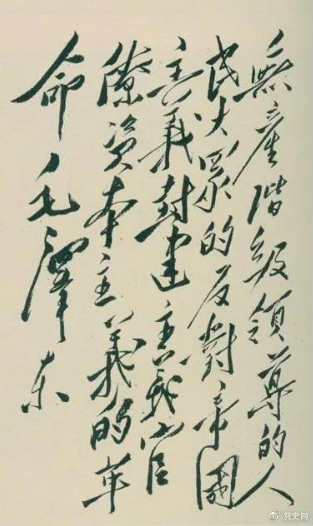 ▼1948年4月1日,毛泽东在晋绥干部会议上讲话,阐明新民主主义革命的总路线和总政策。这是毛泽东关于总路线的题词。