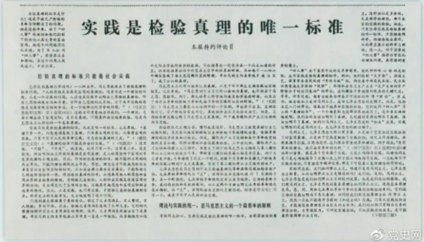 ▼图为《光明日报》以特约评论员的名义公开发表《实践是检验真理的唯一标准》一文。