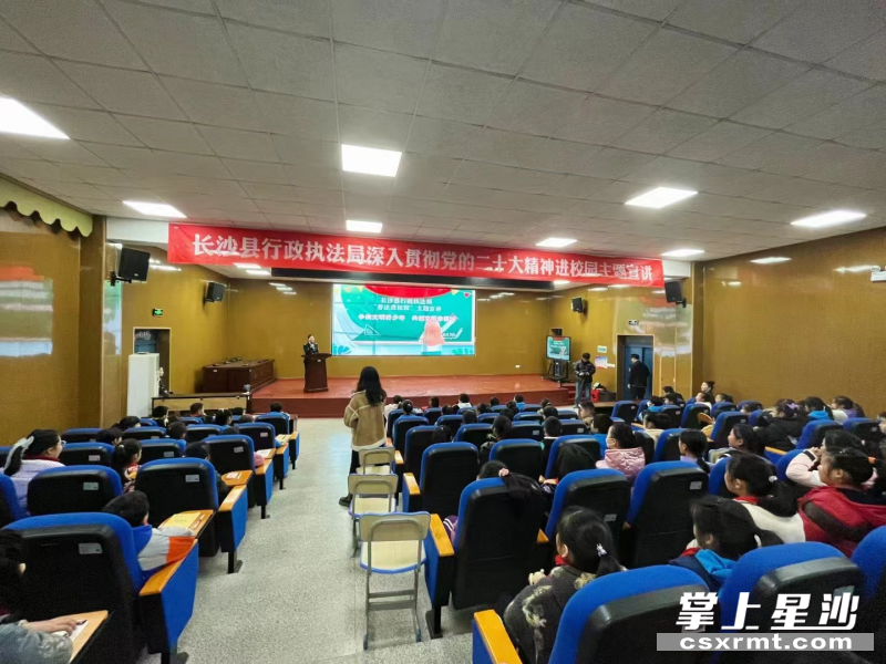2月22日,在长沙县蓓蕾小学开展普法讲座,结合文明创建主题,从交通秩序、市容秩序、环境保护、文化执法等方面入手,结合生动的生活案例,引导师生们建设文明校园,增强法治意识。