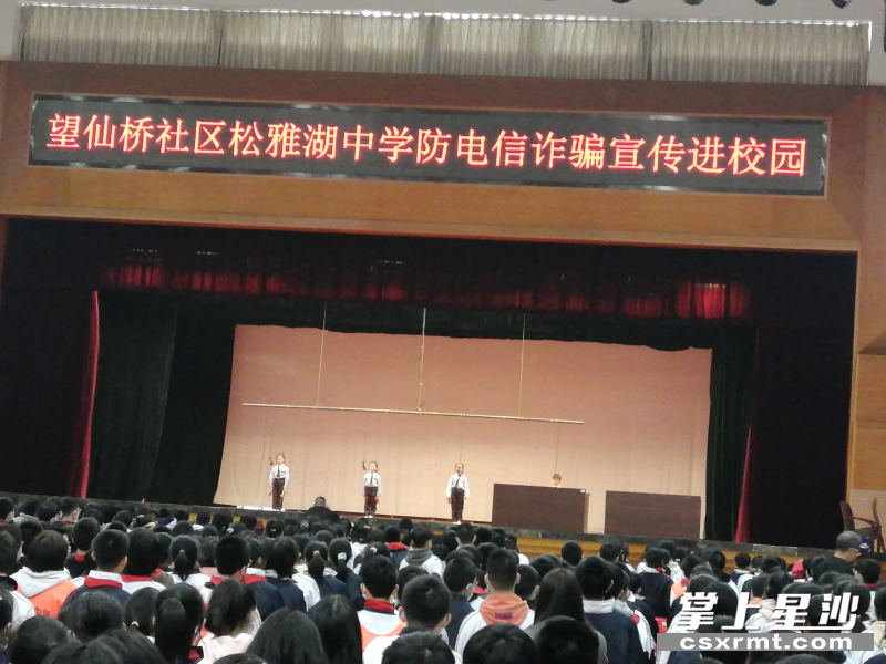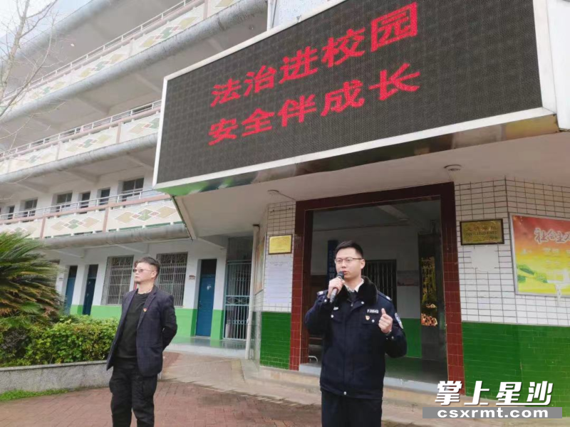 3月3日,在松雅湖中学开展法治进校园活动,向师生宣传道路交通安全、禁毒和防电信诈骗相关法律知识,提高师生自我防护能力。