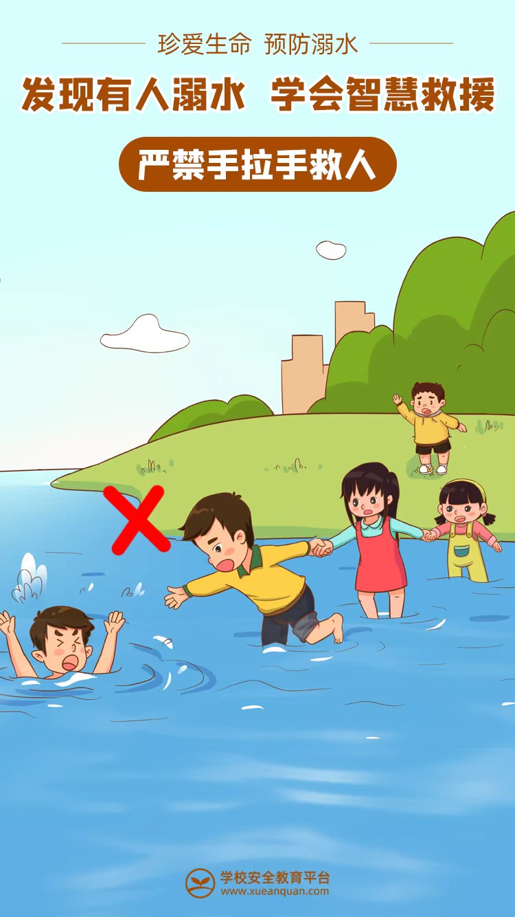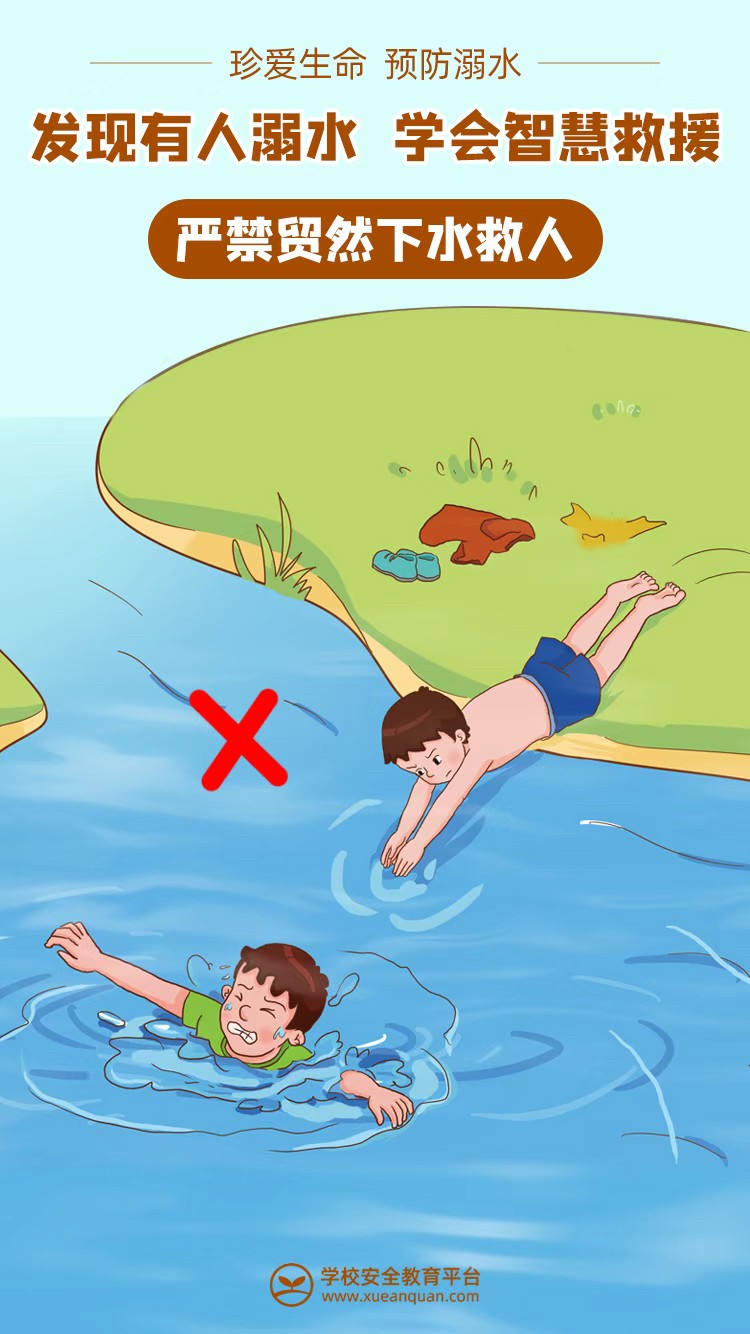 不管孩子会不会游泳,你都应该告诉孩子:不私自下水游泳;不擅自与他人结伴游泳;不在无成人带领的情况下游泳;不到无安全设施、无救援人员的水域游泳;不到不熟悉的水域游泳;不熟悉水性的学生不擅自下水施救。