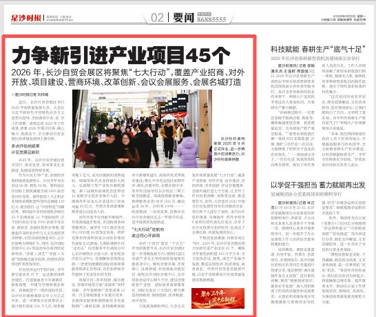 2026年,长沙自贸会展区将聚焦“七大行动”,覆盖产业招商、对外开放、项目建设、营商环境、改革创新、会议会展服务、会展名城打造