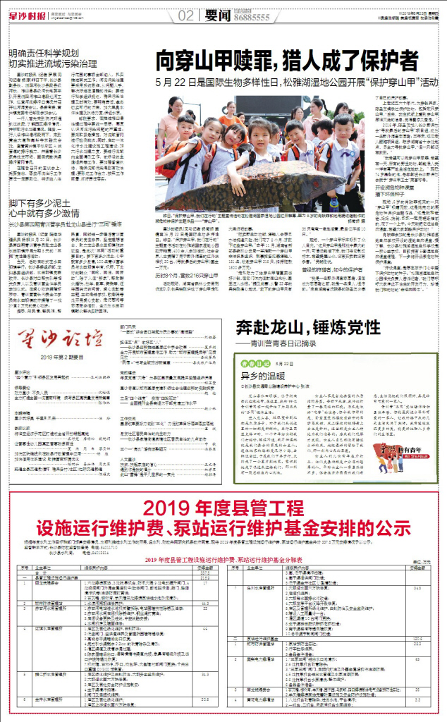 星沙时报讯(见习记者 杨菊娇 黄倩宜)5月22日是国际生物多样性日。昨日,“保护穿山甲,我们在行动”主题宣传活动在松雅湖国家湿地公园拉开帷幕,400余人参加活动,社会各界人士捐赠了用于野外调查的红外线相机20台、《寻找最后的穿山甲》基金一万元。