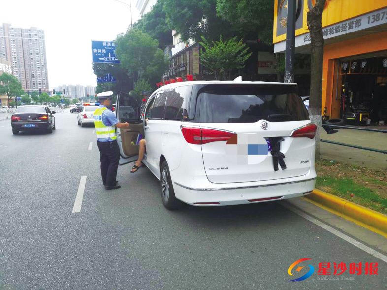 26日13时,湘龙中队中队长罗攀率队在辖区内巡逻,巡至时中路的三一路至金茂路路段时,发现一台白色小车的机动车号牌一半为正常的蓝底白字,另一半却是黑色看不清号牌。罗攀当即意识到这很有可能是故意遮挡号牌的违法行为。