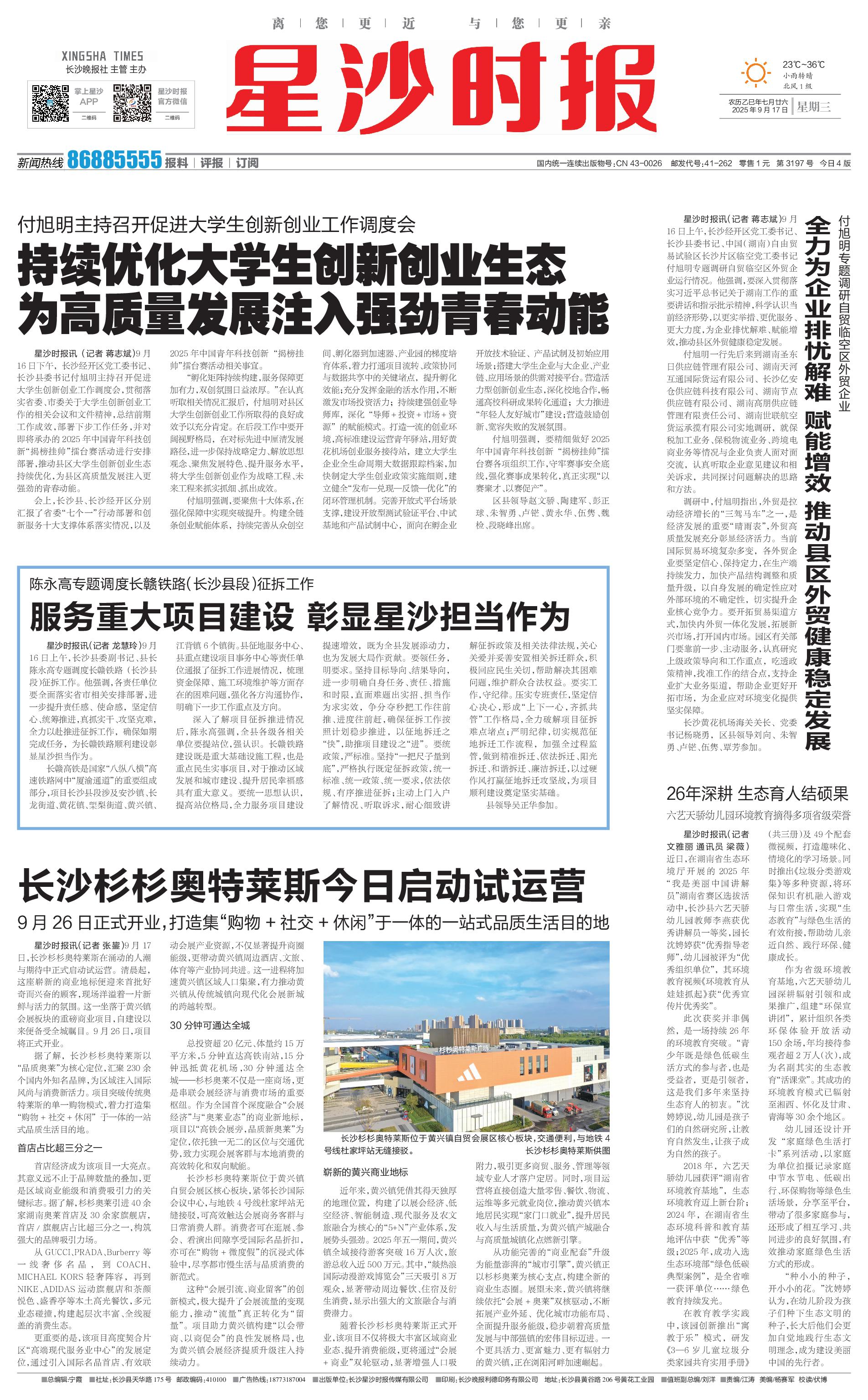 星沙时报讯(记者 张鋆)9月17日,长沙杉杉奥特莱斯在涌动的人潮与期待中正式启动试运营。清晨起,这座崭新的商业地标便迎来首批好奇而兴奋的顾客,现场洋溢着一片新鲜与活力的氛围。这一坐落于黄兴镇会展板块的重磅商业项目,自建设以来便备受全城瞩目。9月26日,项目将正式开业。