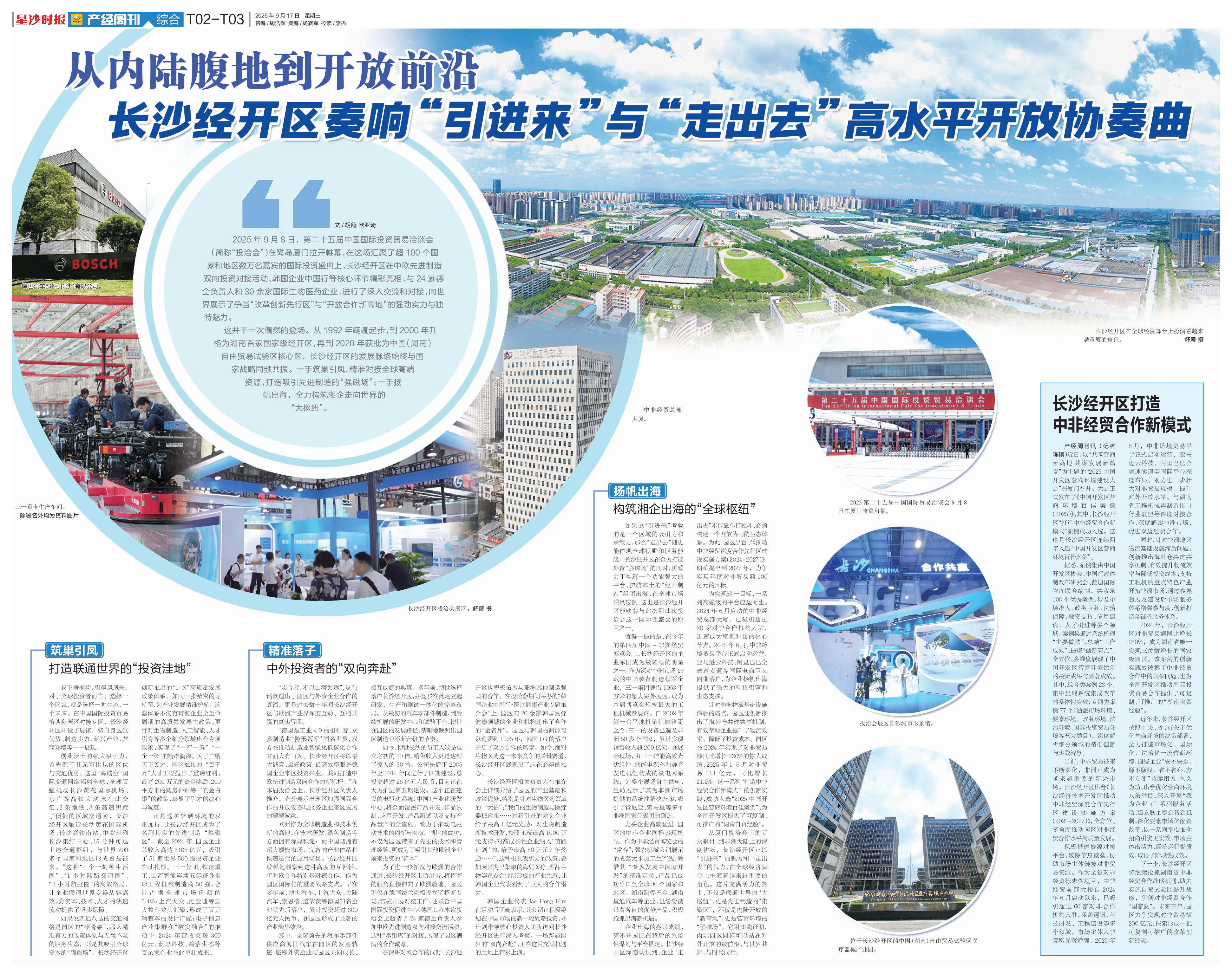 从厦门投洽会上的万众瞩目,到非洲大陆上的深度耕耘,长沙经开区正以“引进来”的魅力和“走出去”的魄力,在全球经济舞台上扮演着越来越重要的角色。这片充满活力的热土,不仅是联通世界的“大枢纽”,更是先进制造的“集聚区”,不仅是内陆开放的“新高地”,更是营商环境的“强磁场”。它用实践证明,内陆园区同样可以站在对外开放的最前沿,与世界共舞,与时代同行。