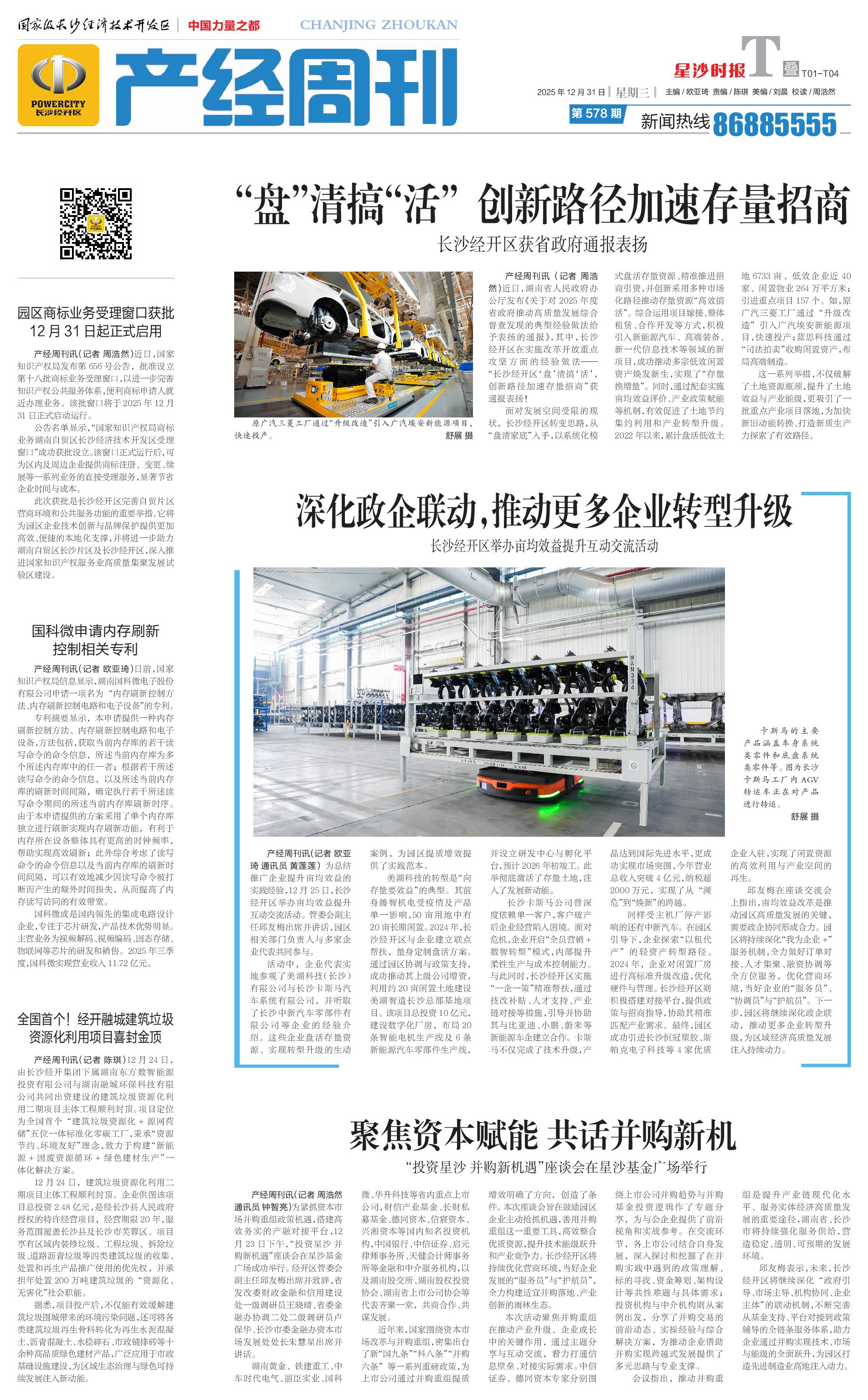 近年来,国家围绕资本市场改革与并购重组,密集出台了新“国九条”“科八条”“并购六条”等一系列重磅政策,为上市公司通过并购重组提质增效明确了方向,创造了条件。本次座谈会旨在鼓励园区企业主动抢抓机遇,善用并购重组这一重要工具,高效整合优质资源,提升技术能级跃升和产业竞争力。长沙经开区将持续优化营商环境,当好企业发展的“服务员”与“护航员”,全力构建适宜并购落地、产业创新的雨林生态。