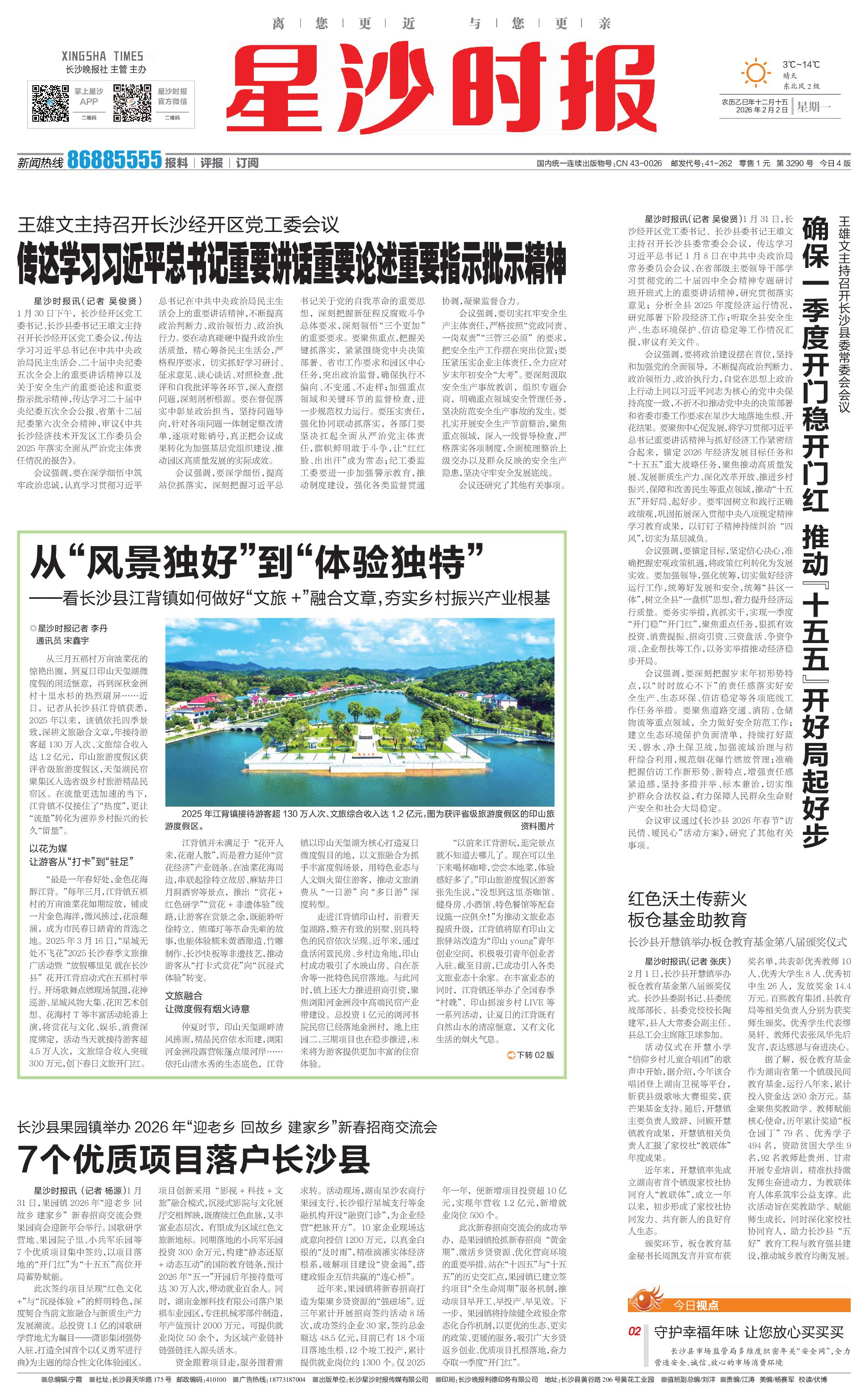 星沙时报讯(记者 吴俊贤)1月31日,长沙经开区党工委书记、长沙县委书记王雄文主持召开长沙县委常委会会议,传达学习习近平总书记1月8日在中共中央政治局常务委员会会议、在省部级主要领导干部学习贯彻党的二十届四中全会精神专题研讨班开班式上的重要讲话精神,研究贯彻落实意见;分析全县2025年度经济运行情况,研究部署下阶段经济工作;听取全县安全生产、生态环境保护、信访稳定等工作情况汇报,审议有关文件。