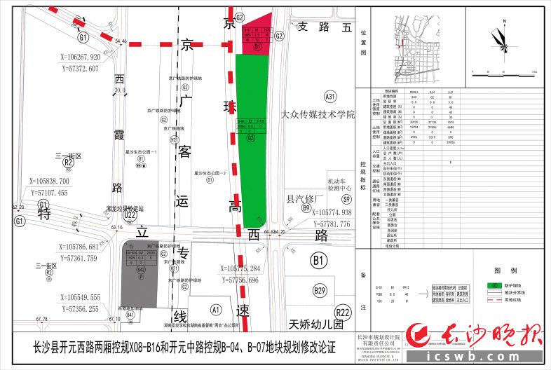 我局拟审批长沙县开元西路两厢控规X08-B16地块和开元中路控规B-04、B-07地块规划修改。该项目位于长沙县星沙街道、湘龙街道,由长沙县星沙公共交通有限公司开发建设。为适应长沙县公交一体化的迅速发展,落实市、县政府优先发展公共交通的要求,长沙县星沙公共交通有限公司申请将建设中灰埠路公交首末站进行控规调整,具体调整如下: